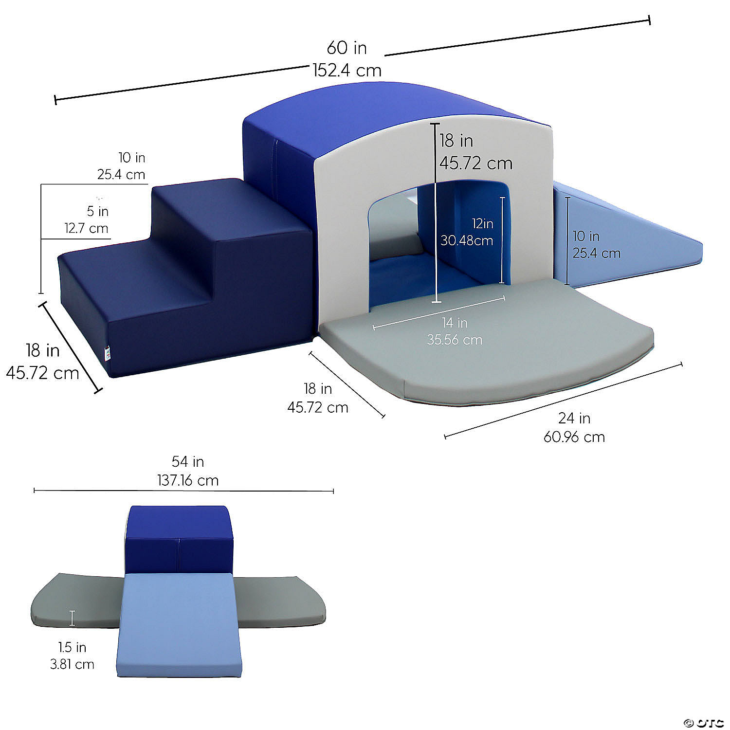 Explore new heights with the all-in-one Toddler Playtime Tunnel Climber! Stimulate young imaginations and motor skills by encouraging hands and feet to explore up the soft steps, crawl across or under the sturdy tunnel and coast down the gentle slide. Tunnel is made of sturdy foam to support little ones as they venture up and over, while soft side pads add extra cushion as kids crawl through. Pieces can be rearranged to build different configurations to accomodate kids as they grow and develop new skills. Children should remove shoes before play to ensure product longevity. Shipping & Returns