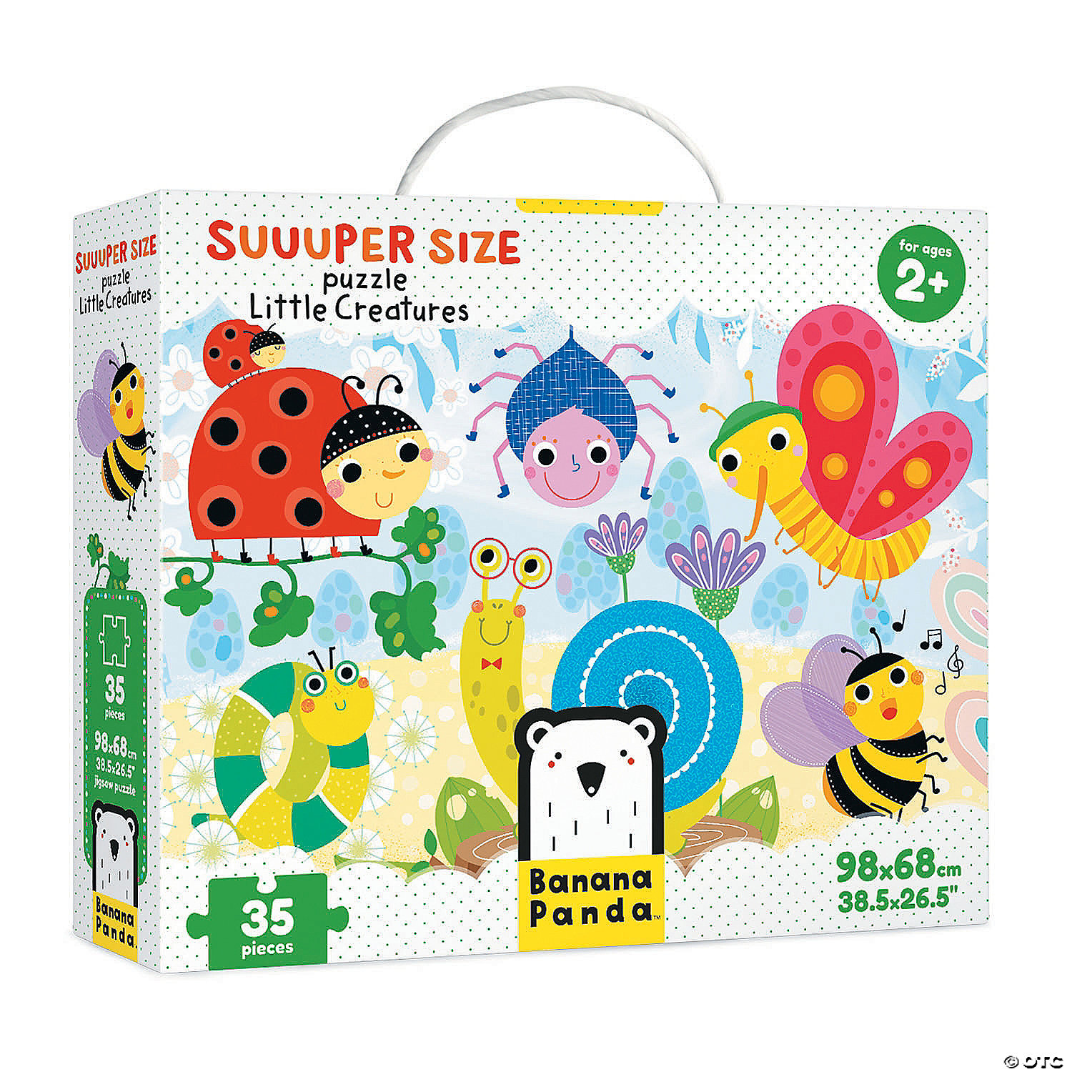 A big game for little hands! Suuuper Size Puzzle is abuzz with cute-as-a-bug critters on 35 oversized puzzle pieces. Easy-match pieces are fun to fit together as puzzlers build dexterity, hand-eye coordination and concentration skills. Comes in a keepsake box with a sturdy handle.• Big pieces make this an easy-to-handle puzzle• Promotes cognitive development, fine motor skills, hand-eye coordination and concentration skills• Includes 35 oversized puzzle pieces in a keepsake box with sturdy handle
