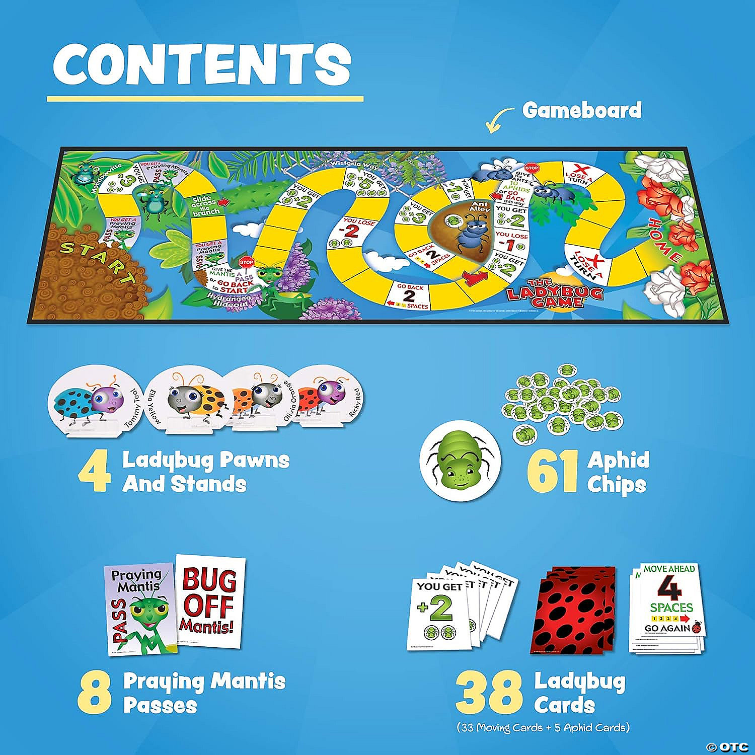 The Ladybug Game is a delightful board game that takes children on a whimsical journey through the garden. As players guide their ladybug home to the rose garden, they'll encounter friendly ants, pesky aphids, and a hungry praying mantis. With its charming graphics, engaging story, and simple gameplay, this game is perfect for introducing children to the world of board games. The Ladybug Game also supports early literacy and numeracy skills, making it a fun and educational experience. Designed by a first-grader and recognized by the Parents' Choice Foundation, this award-winning game is a fantastic gift for children ages 3 and up. For 2 to 4 players.