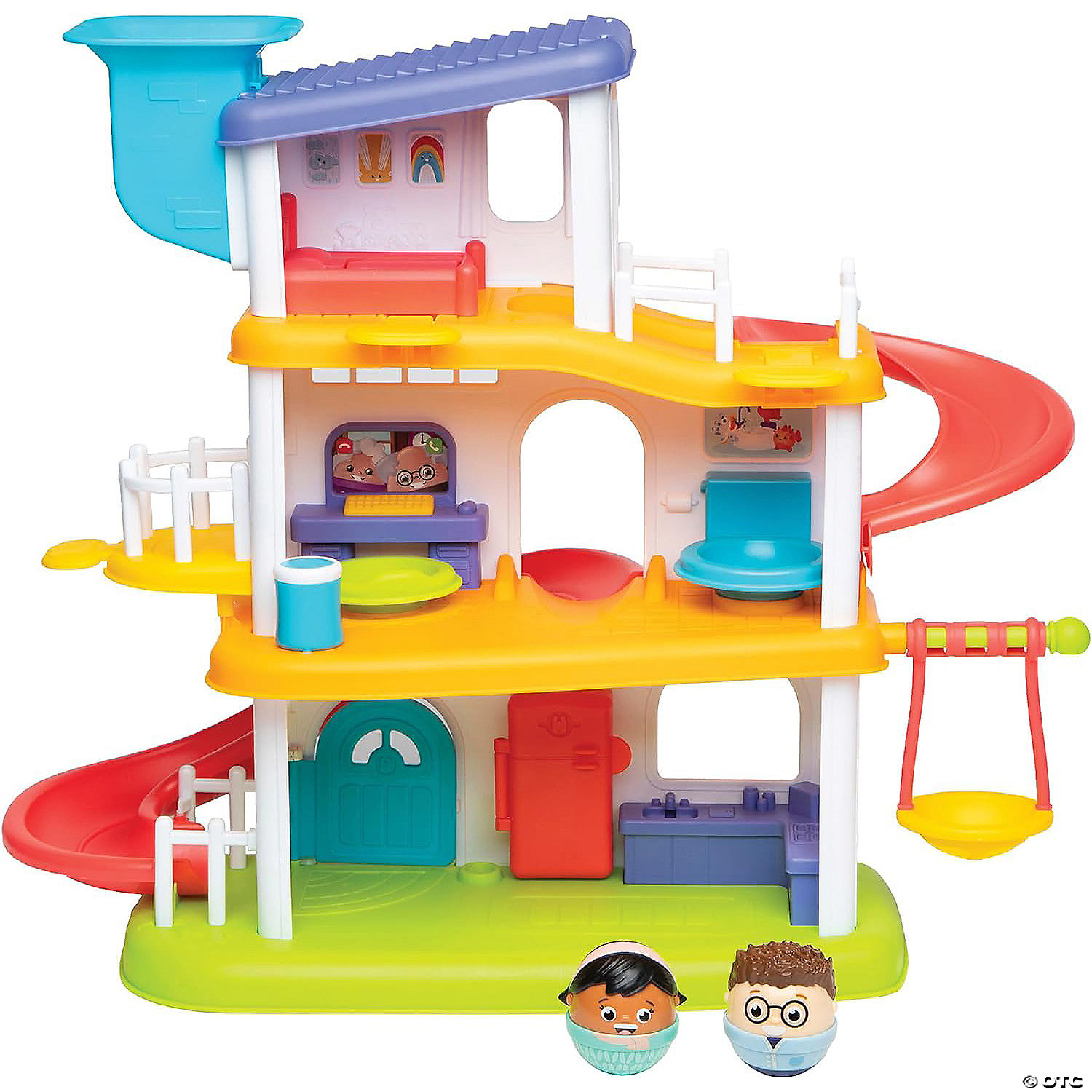 Designed to spark creativity and encourage hands-on play, Weebles learning toys are perfectly sized for little hands to grasp, spin and wobble. The interactive features of this three-story house inspire imaginative play as toddlers take Weebles characters Luca and Remi on an adventure throughout the house, discovering fun activities along the way. They’ll discover cause-and-effect play as they send their Weebles companions sliding, tumbling and swinging around their Smart House, cultivating motor and storytelling skills along the way. The house's Smart Speaker comes alive at the touch of a button, serenading young ones with over 30 sounds and songs, enhancing the playtime experience with auditory feedback. With every floor packed with action and the promise of countless adventures, Weebles: My Smart House is a doorway to interactive learning and fun! Some assembly required. Requires batteries (included).