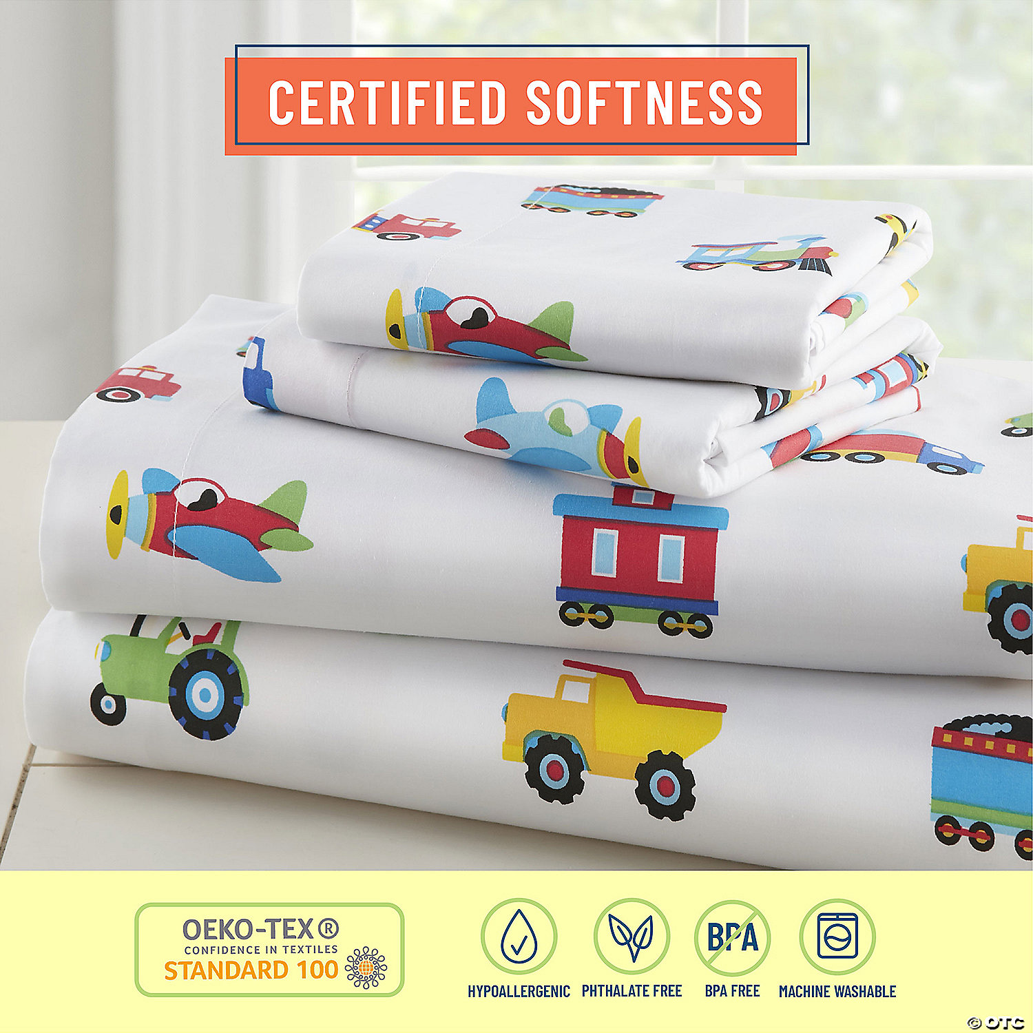 Wildkin Trains, Planes and Trucks 100% Cotton Flannel Fitted Crib Sheet