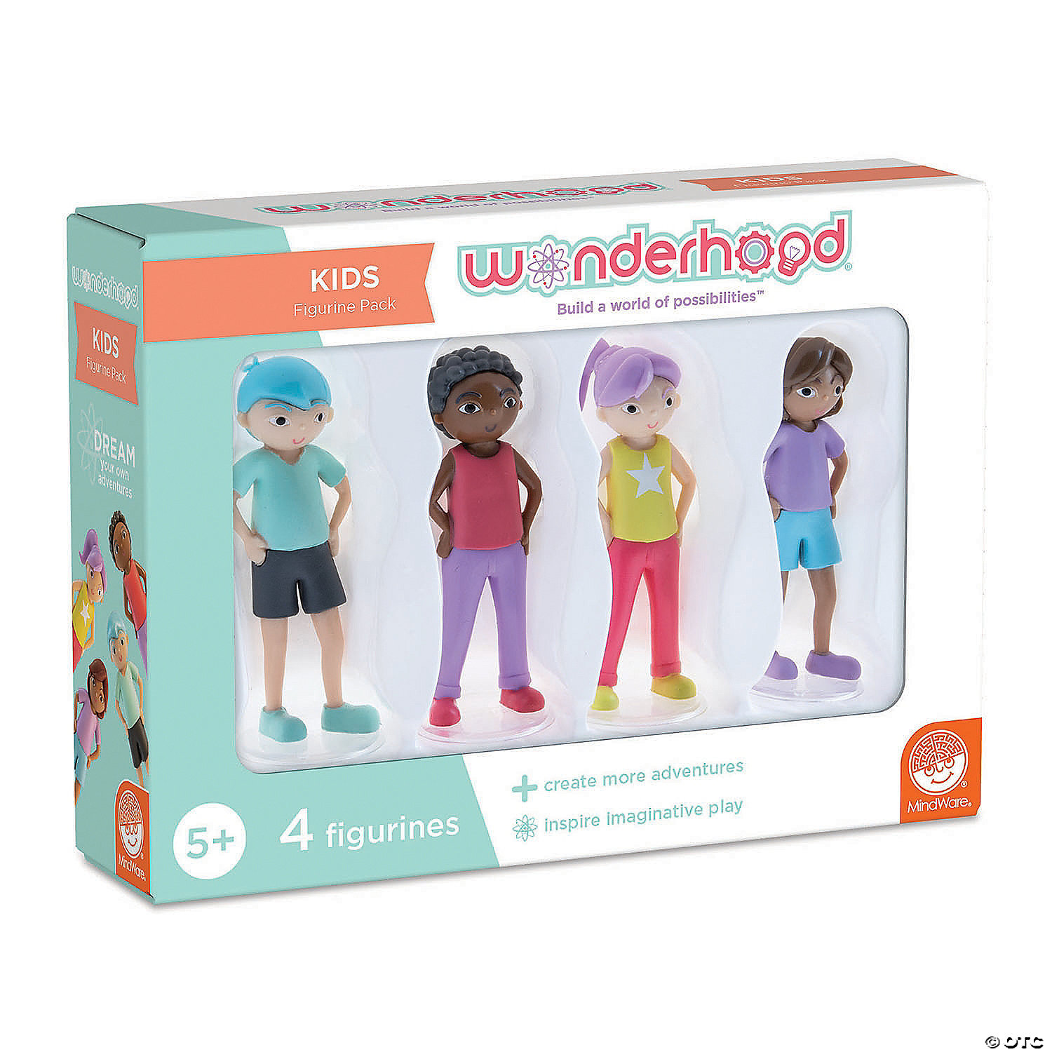 Expand the play of Wonderhood sets with this set of 4 Wonderhood Kids. Kids practice social interactions when they act out play between child characters much like themselves, and the extra figures make Wonderhood sets more fun with friends! Whether customers for the Pet Place or family coming to stay at the Grand Hotel, kids create the stories of each detailed figurine in the world of their own imaginations.• Develops creativity, social skills, and self-confidence• Includes 4 durable and diverse 3D plastic figures (3 girls, 1 boy) each 3.25” tall
